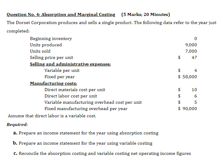 Solved 0 Question No 4 Absorption And Marginal Costing 5 Chegg Com